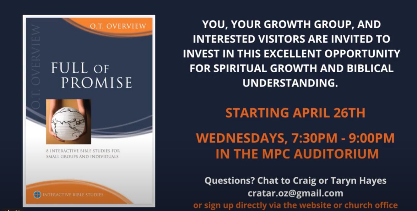 Craig and Taryn Hayes will be leading the Full of Promise course over 8 Wednesday evenings at MPC. Sign up here.